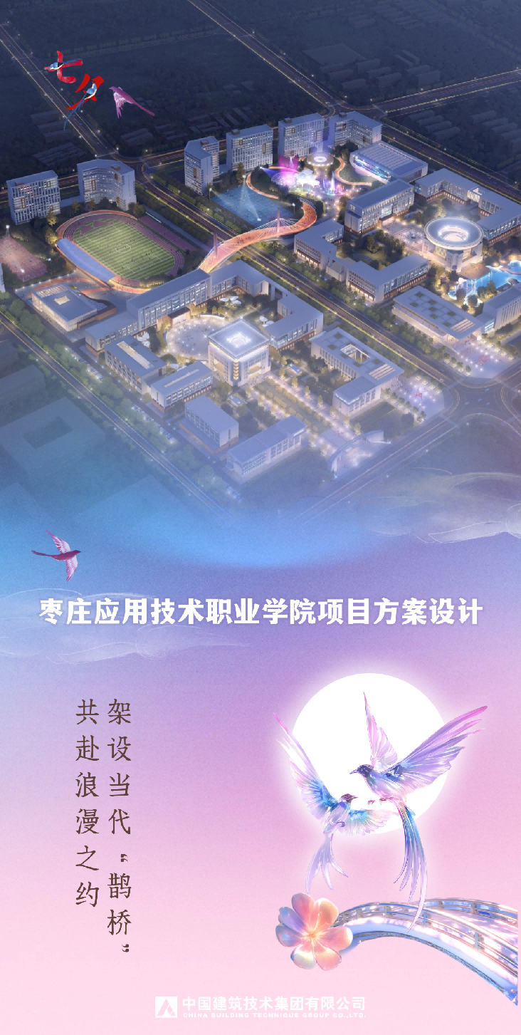 本項(xiàng)目位于棗莊市中心,總用地面積37公頃,地上建筑面積約40萬平方米,地下建筑面積約5萬平方米,容積率1.40。項(xiàng)目堅(jiān)持規(guī)劃引領(lǐng),按“高寬大切”要求,打造“節(jié)能、智慧、人文、綠色”校園,彰顯學(xué)?!艾F(xiàn)代化、人文化、國(guó)際化、生態(tài)化”理念。為豐富棗莊應(yīng)用技術(shù)職業(yè)學(xué)院文化內(nèi)涵,規(guī)劃“如意”鵲橋,時(shí)空互聯(lián),旨在構(gòu)建心靈橋梁,營(yíng)造和諧校園,傳遞學(xué)院珍視師生情誼與未來愿景。