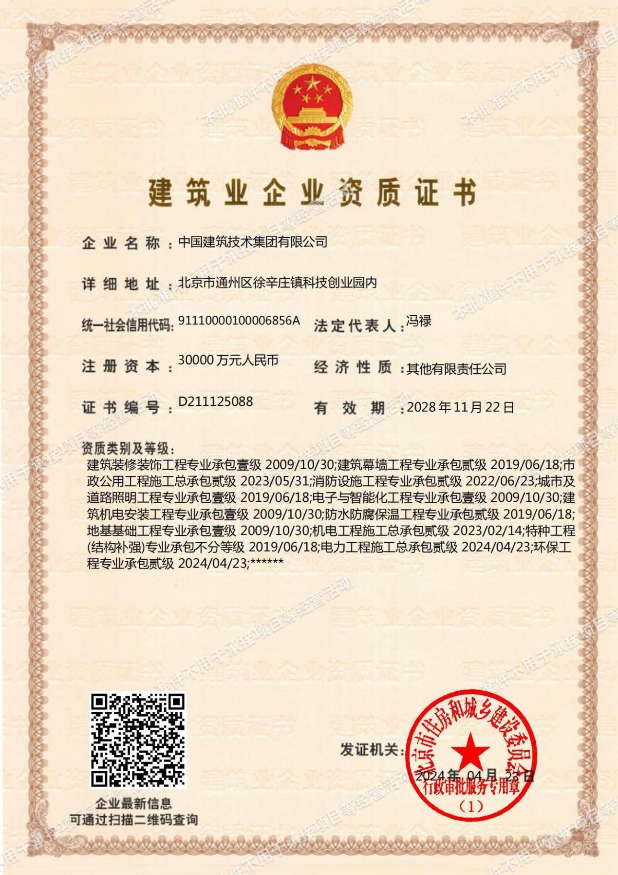 近年來,中國建技致力于完善資質(zhì)平臺建設,形成了覆蓋規(guī)劃、勘察、設計、施工、監(jiān)理、咨詢、檢測與服務等領域的全產(chǎn)業(yè)鏈資質(zhì)矩陣。勘察設計領域,擁有工程勘察專業(yè)類(巖土工程)甲級、建筑行業(yè)(建筑工程)甲級、風景園林工程設計專項甲級、城鄉(xiāng)規(guī)劃編制甲級、土地規(guī)劃乙級、測繪工程測量乙級、勞務類(工程鉆探)乙級等多項資質(zhì);工程施工領域,擁有建筑工程施工壹級、市政公用工程貳級、機電工程施工貳級、電力工程施工貳級四項總承包資質(zhì);鋼結(jié)構、地基基礎、裝修裝飾、機電安裝、道路照明、電子與智能化等專業(yè)承包壹級資質(zhì);建筑幕墻、消防設施、防水防腐保溫等專業(yè)承包貳級資質(zhì);工程監(jiān)理領域,具備屋建筑工程監(jiān)理甲級資質(zhì),開創(chuàng)了以科研引領、設計助力、施工驅(qū)動的一體化經(jīng)營新局面。