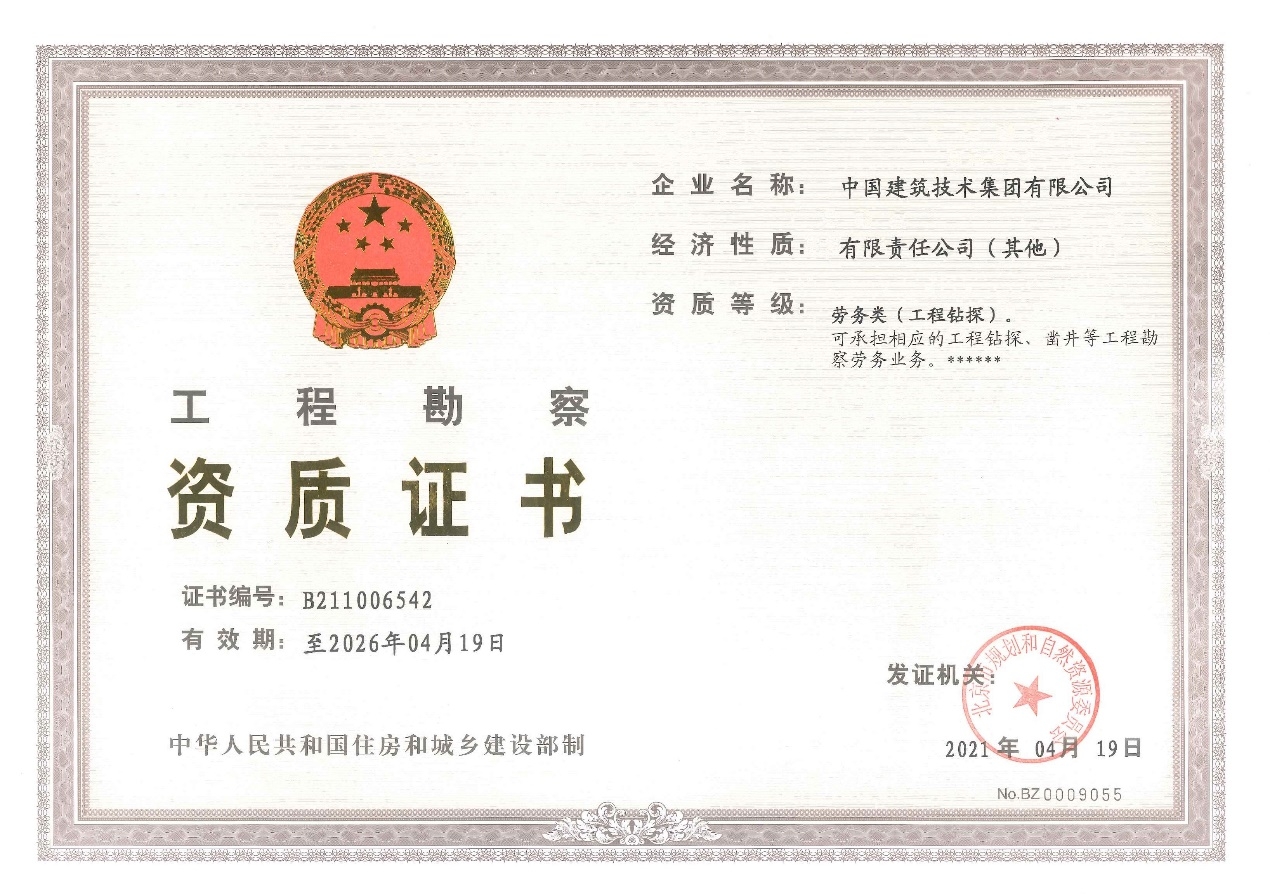 ? ? ? ?4月19日,集團(tuán)公司獲得了北京市規(guī)劃和自然資源委員會(huì)頒發(fā)的工程勘察勞務(wù)類(lèi)(工程鉆探)資質(zhì)證書(shū)。