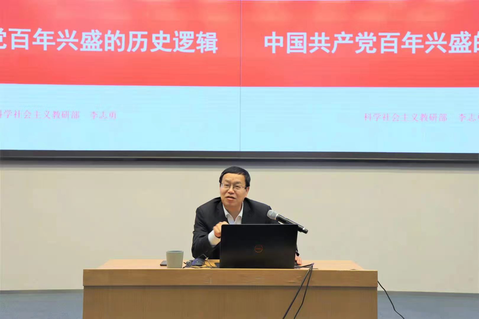 李志勇教授從初心使命、光輝歷程、偉大成就和歷史經(jīng)驗四個方面引導(dǎo)大家一同回顧了中國共產(chǎn)黨成立以來的崢嶸歲月。在對歷史經(jīng)驗的講授中,李教授分別從思想一變天地寬、勇立潮頭敢為先、得民心者得天下、自我革命御風險、紅色基因不能變和團結(jié)統(tǒng)一鑄輝煌六個方面,闡明了中國共產(chǎn)黨能夠帶領(lǐng)中國人民從站起來、富起來到強起來的深刻原因,充分論證了中國特色社會主義制度的優(yōu)越性和道路的必然性。