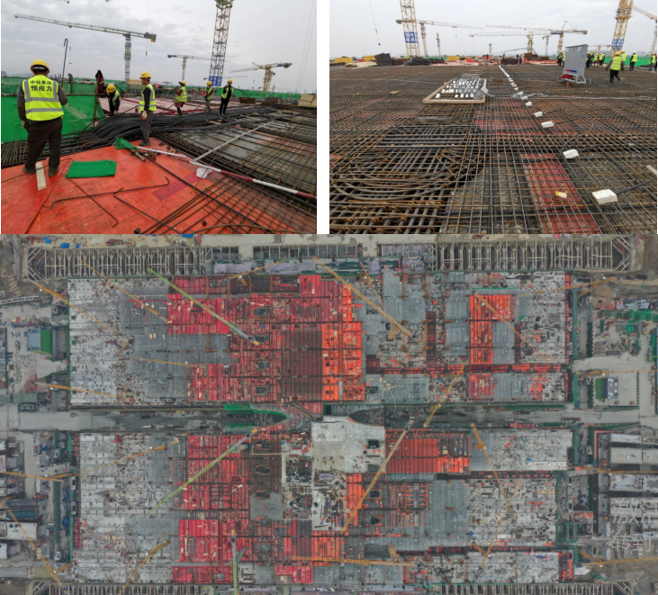 高鐵杭州西站是中國(guó)特大型鐵路樞紐站房之一,是集鐵路、軌道交通、長(zhǎng)途客運(yùn)、地鐵、公交、出租及社會(huì)車輛等多種交通于一體的“大型綜合交通樞紐”,是國(guó)內(nèi)第一個(gè)付諸實(shí)施的“站城融合”特大型高鐵樞紐,是新時(shí)代高鐵樞紐站城融合的標(biāo)桿。工程總建筑面積約74萬(wàn)平米,其中預(yù)應(yīng)力工程量約9000多噸,是目前國(guó)內(nèi)預(yù)應(yīng)力工程量最大的高鐵站房。其結(jié)構(gòu)復(fù)雜,承軌層采用預(yù)應(yīng)力箱梁+鋼管柱結(jié)構(gòu)方案;施工難度大,鋼結(jié)構(gòu)、預(yù)應(yīng)力、主體鋼筋等工序同步穿插進(jìn)行;工期緊,主體結(jié)構(gòu)工期僅10個(gè)月。預(yù)應(yīng)力類型多,既采用了傳統(tǒng)有粘結(jié)預(yù)應(yīng)力技術(shù),亦采用了我單位自主研發(fā)的大直徑緩粘結(jié)預(yù)應(yīng)力技術(shù)。