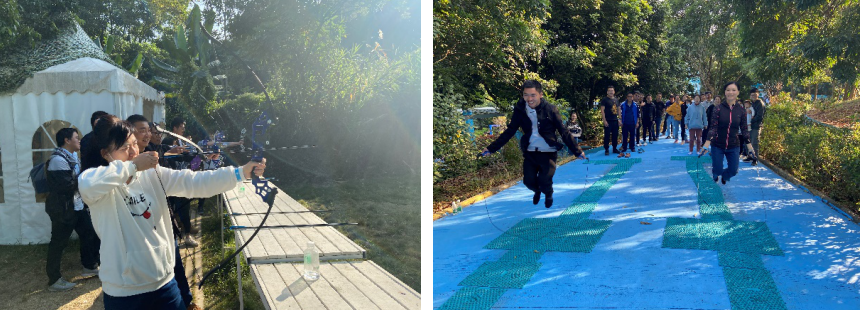 團(tuán)建活動在趣味比賽中拉開帷幕,通天塔、勇闖指壓板、射箭等比賽環(huán)環(huán)相扣,精彩紛呈,員工們在享受比賽帶來的歡樂的同時,也充分展現(xiàn)著互幫互助,協(xié)同奮進(jìn)的良好風(fēng)貌。