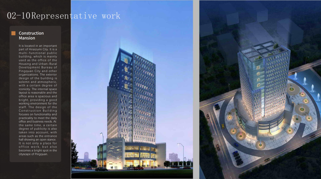 平泉市建設(shè)大廈在地標(biāo)性建筑設(shè)計(jì)中的重要實(shí)踐。他通過(guò)現(xiàn)代建筑語(yǔ)言與地域文化的結(jié)合,打造出一座兼具功能性與象征意義的城市地標(biāo),展現(xiàn)了其在公共建筑設(shè)計(jì)中的深厚造詣。(平泉市建設(shè)大廈)