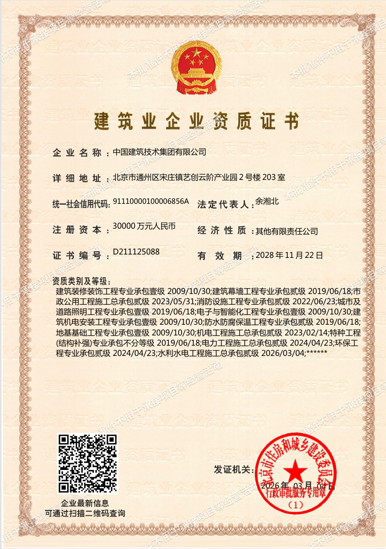 3月4日,中國(guó)建技順利通過(guò)核準(zhǔn),喜獲水利水電工程施工總承包貳級(jí)資質(zhì),標(biāo)志著集團(tuán)公司在戰(zhàn)新產(chǎn)業(yè)領(lǐng)域布局實(shí)現(xiàn)重要突破,市場(chǎng)競(jìng)爭(zhēng)力進(jìn)一步加強(qiáng)。