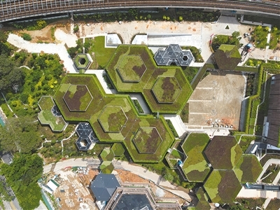 近年來,新加坡注重應(yīng)對氣候變化,不斷提高建筑的環(huán)境可持續(xù)標(biāo)準(zhǔn),對綠色建筑標(biāo)志認(rèn)證設(shè)置了最高等級——綠色標(biāo)志白金獎(jiǎng)。三巴旺綜合社區(qū)中心項(xiàng)目以取得綠色標(biāo)志白金獎(jiǎng)為目標(biāo),將綠色環(huán)保理念貫穿于項(xiàng)目設(shè)計(jì)和施工的各個(gè)環(huán)節(jié)。中心的建筑屋頂實(shí)現(xiàn)了無土植物全覆蓋,在新加坡常年炎熱的氣候下,這種設(shè)計(jì)不僅外觀上綠意盎然,還可以起到降溫、吸音、降噪等作用;園林區(qū)域的降雨排水系統(tǒng)運(yùn)用石塊、碎石、植物等天然材料,將雨水匯集起來并層層過濾沉降泥沙,營造出天然河道景象,既美觀又能凈化水源;項(xiàng)目還采用了大量預(yù)制構(gòu)件,雖然對施工精度提出了很高的要求,但可以最大程度減少施工中產(chǎn)生的建筑垃圾。