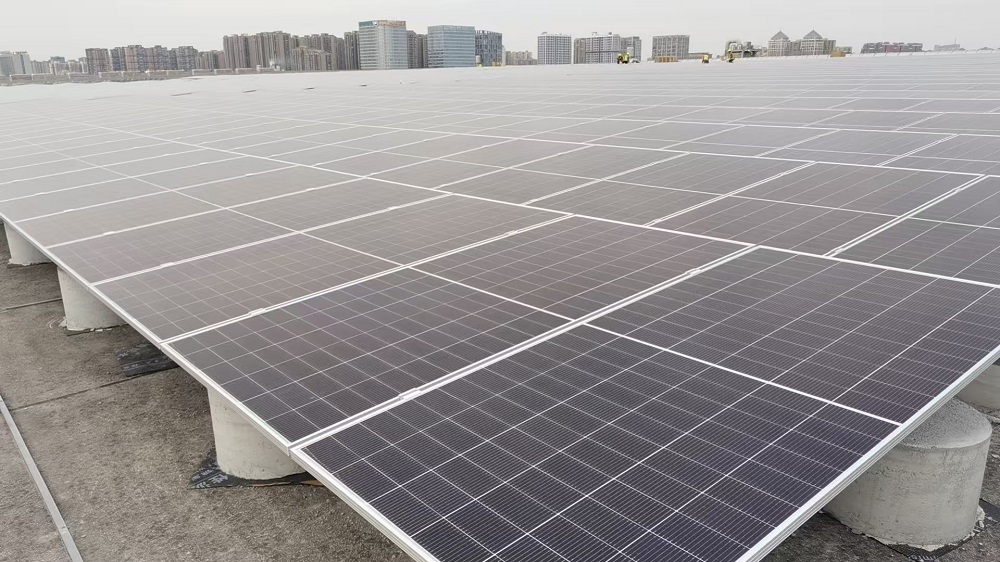 該項(xiàng)目位于四川省成都京東方光電科技有限公司廠區(qū)內(nèi),利用廠區(qū)現(xiàn)有建筑屋頂新建光伏發(fā)電項(xiàng)目,光伏裝機(jī)容量為19.17MWp,項(xiàng)目采取分片發(fā)電,集中并網(wǎng)方案,采用“自發(fā)自用”模式,光伏系統(tǒng)所發(fā)電量100%供廠區(qū)自用。