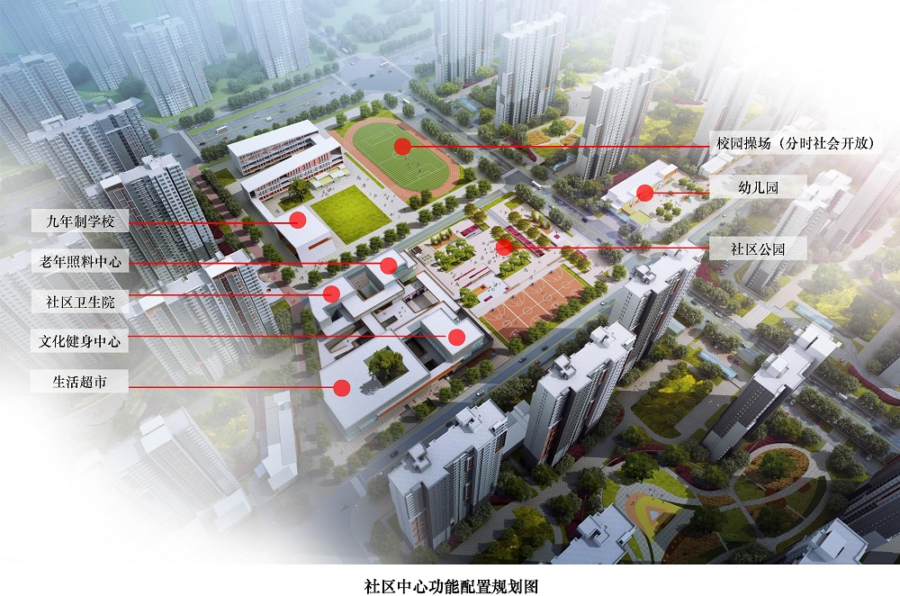 將生活超市、文化娛樂、全民健身、社區(qū)醫(yī)療、老年照料、九年制學(xué)校、社區(qū)公園、幼兒園和管理服務(wù)等社區(qū)類級的公共設(shè)施相對集中或鄰近布局,實現(xiàn)了便利化使用和規(guī)?;?jīng)營的雙重目標(biāo)。規(guī)劃同時兼顧設(shè)施抗擾和共享平衡的問題:醫(yī)療、養(yǎng)老相互結(jié)合,教學(xué)設(shè)施相對獨立,學(xué)校操場臨近社區(qū)公園和文體中心布置,方便對外開放和聯(lián)動使用。