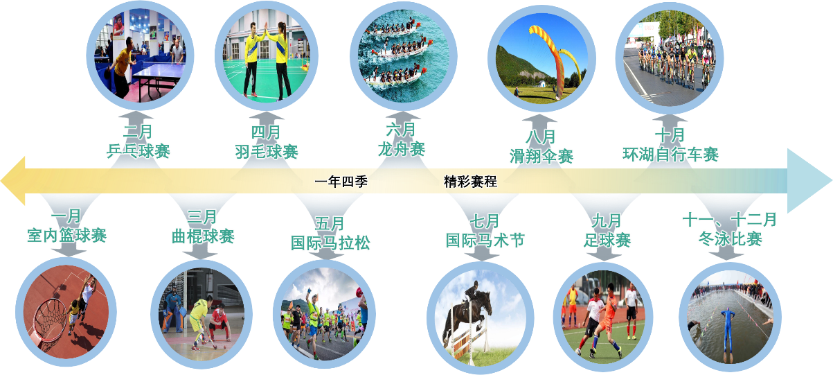2.4.運(yùn)動(dòng)賽事:結(jié)合國家加快發(fā)展健身休閑產(chǎn)業(yè)的指導(dǎo)意見、體育運(yùn)動(dòng)名錄及小鎮(zhèn)建設(shè),打造灰湯體育小鎮(zhèn),布局如足球、馬術(shù)、自行車(東鶩山環(huán)道及環(huán)湖自行車道)、環(huán)湖田徑馬拉松、游泳、賽艇、龍舟賽、擊劍、射箭、射擊(室內(nèi))、太極、廣場(chǎng)舞、攀巖、競(jìng)走等運(yùn)動(dòng)項(xiàng)目,結(jié)合各已開發(fā)項(xiàng)目布置全民休閑運(yùn)動(dòng)項(xiàng)目,打造湖南省賽事運(yùn)動(dòng)基地。