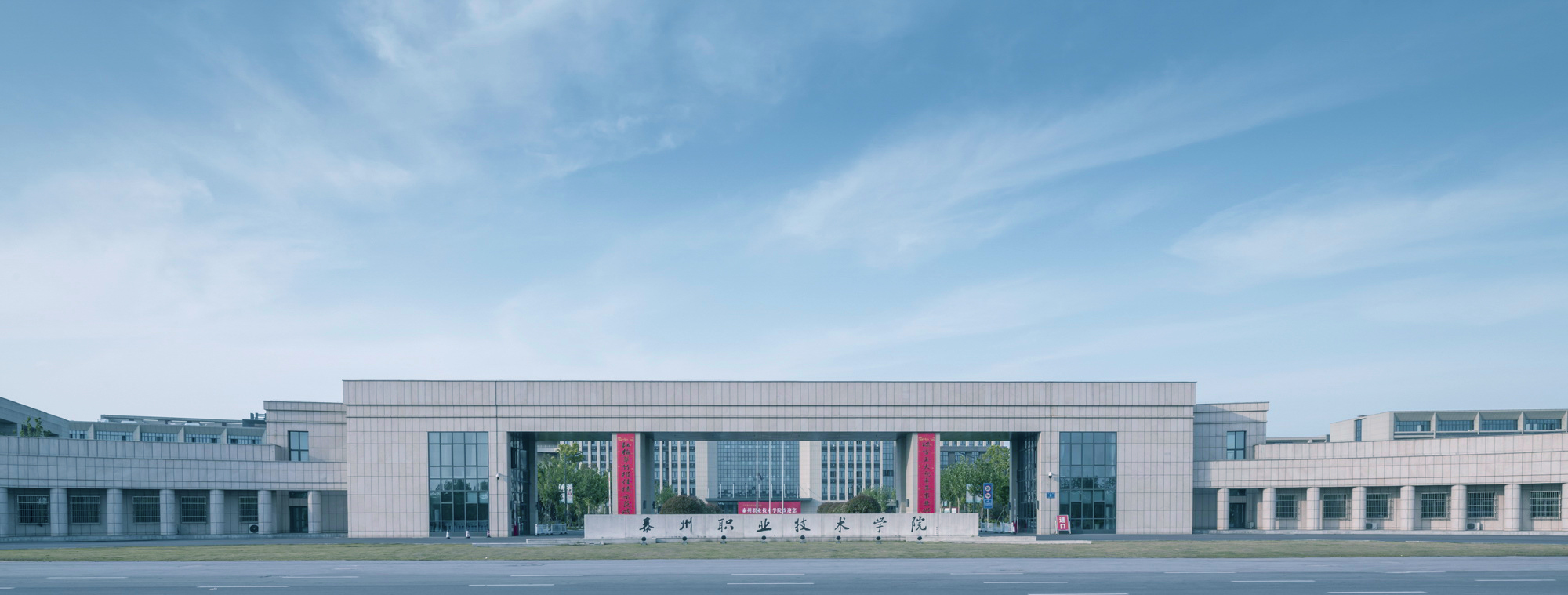 本項(xiàng)目為泰州職業(yè)技術(shù)學(xué)院中國醫(yī)藥城新校區(qū)規(guī)劃與建筑方案。選址于泰州中國醫(yī)藥城境內(nèi)。規(guī)劃用地面積約1061 畝。設(shè)計(jì)規(guī)劃在校學(xué)生10000人,教職員工670 余人。實(shí)際用地面積約54萬平方米,一期設(shè)計(jì)總建筑面積約27.98萬平方米。實(shí)際本單位完成施工圖涵蓋建筑面積約16.54萬平方米。