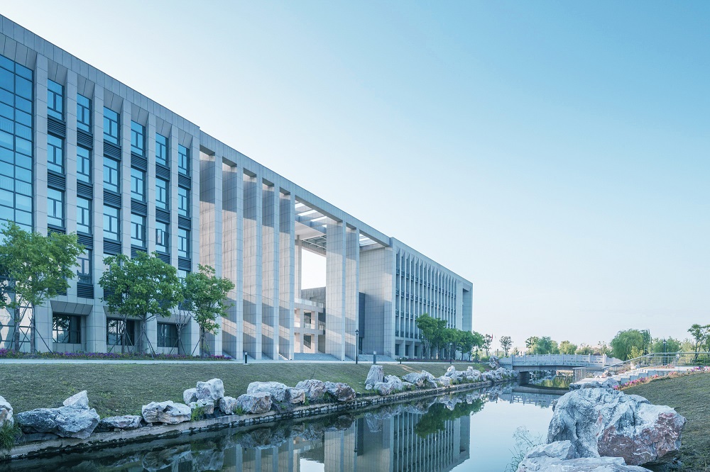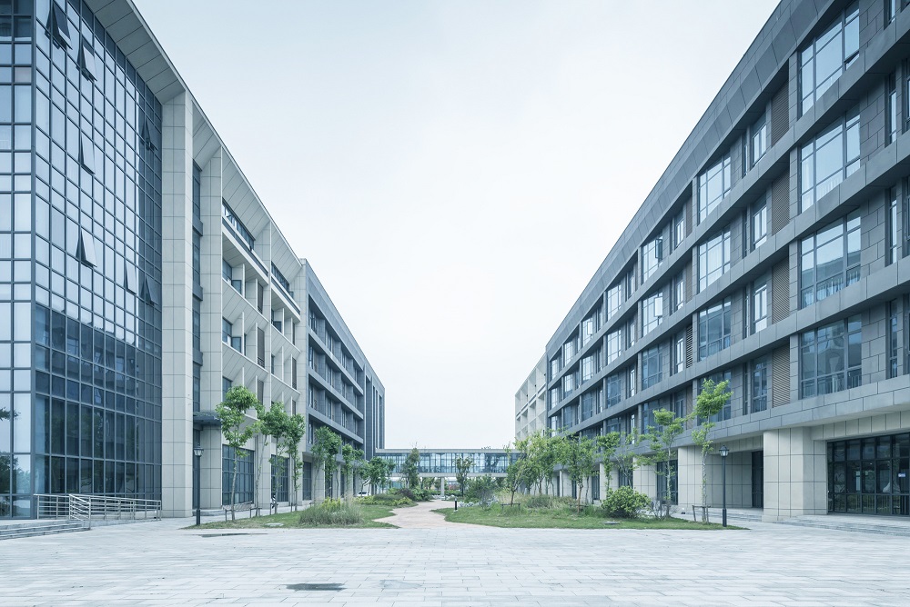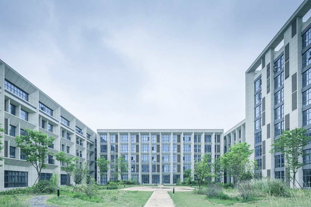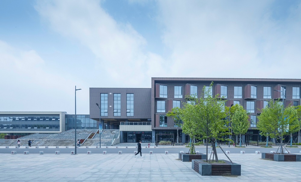 建筑設(shè)計(jì)秉承傳承與創(chuàng)新的核心理念。研究高等教育起源校園規(guī)劃手法與東西方校園開放空間策略,奠定校園核心區(qū)域教學(xué)區(qū)、實(shí)訓(xùn)區(qū)基調(diào)。教學(xué)區(qū)嚴(yán)謹(jǐn)莊重,打造軸線分明的共享空間,視為傳承;實(shí)訓(xùn)區(qū)流動(dòng)拓展,打造平等、自由、交流、學(xué)習(xí)的氛圍,視為創(chuàng)新。結(jié)合江蘇泰州當(dāng)?shù)亟ㄖ伾c現(xiàn)代校園色彩體系,體系校園的文化與嚴(yán)謹(jǐn)。