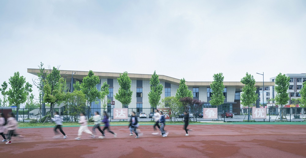 空間規(guī)劃上,打造以場地水系的改造為基礎(chǔ)、貫穿場地東西的創(chuàng)新軸,與主入口和湖面自然串聯(lián)的南北軸線傳承軸。建筑設(shè)計(jì)突破傳統(tǒng)教學(xué)樓與地面的簡單垂直空間關(guān)系,利用柱廊、下沉、屋頂平臺(tái)等手法,讓立體的校園空間具有了流動(dòng)性和交流性,最大化豐富了學(xué)生的交流活動(dòng)空間。